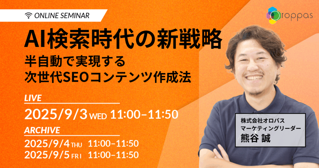 【自社ウェビナー】AI検索時代の新戦略〜半自動で実現する次世代SEOコンテンツ作成法〜