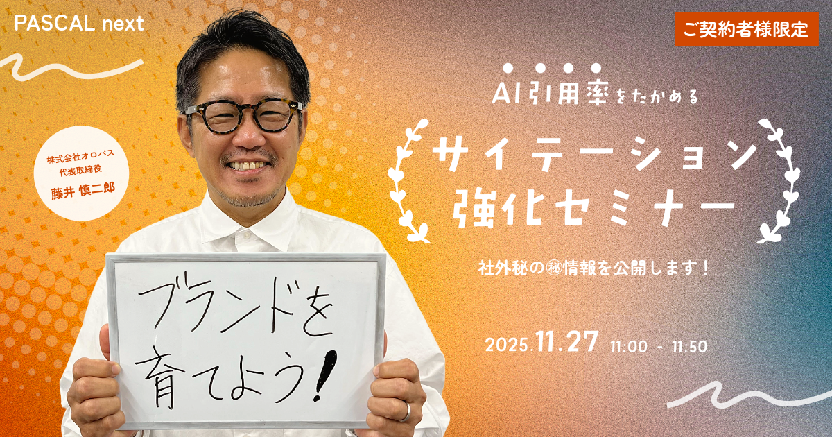 AIは信頼性の高い情報源を重視するため、他サイトやメディアでの言及が多い企業ほど、引用されやすくなります。本ウェビナーでは、AI時代における“信頼されるサイト”になるためのサイテーション強化の具体的な方法と、実際に弊社で行っている施策についてご紹介します。