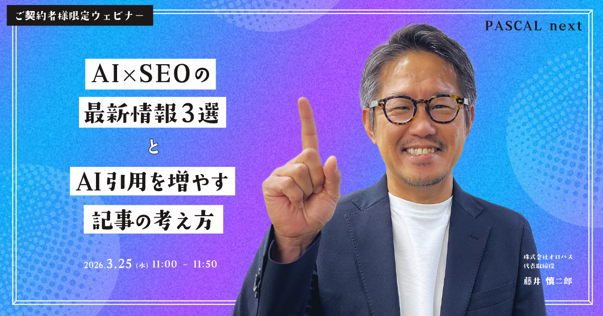 今回のウェビナーは「AI引用を増やす記事の考え方」と「最新のAI×SEOの最新情報」についての解説となります。