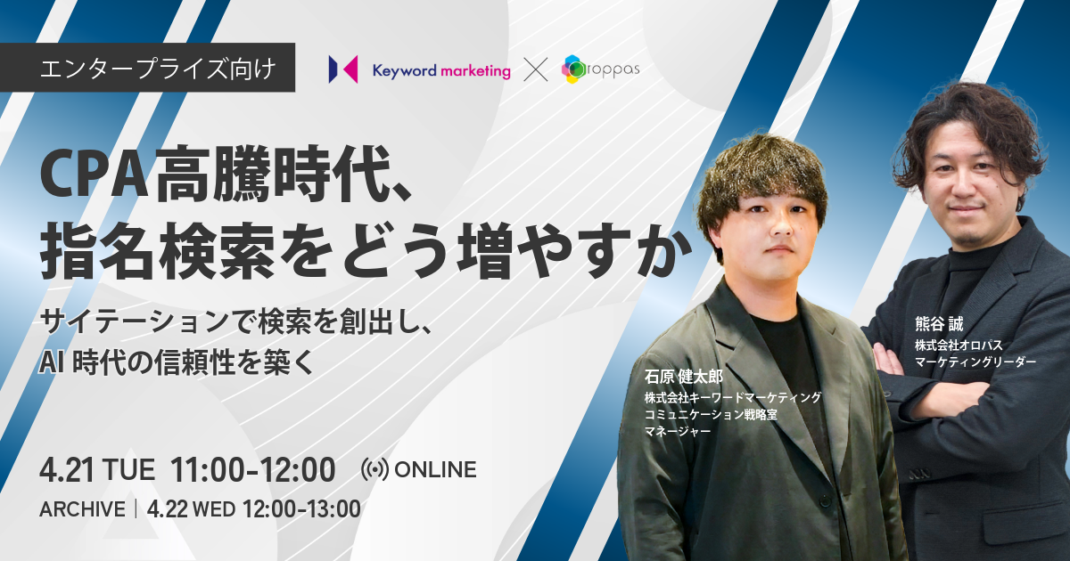 本ウェビナーでは、戦略的に「指名検索」を生み出し、AI時代に選ばれ続けるための信頼性をどう築くのか、最新の設計図を公開します。