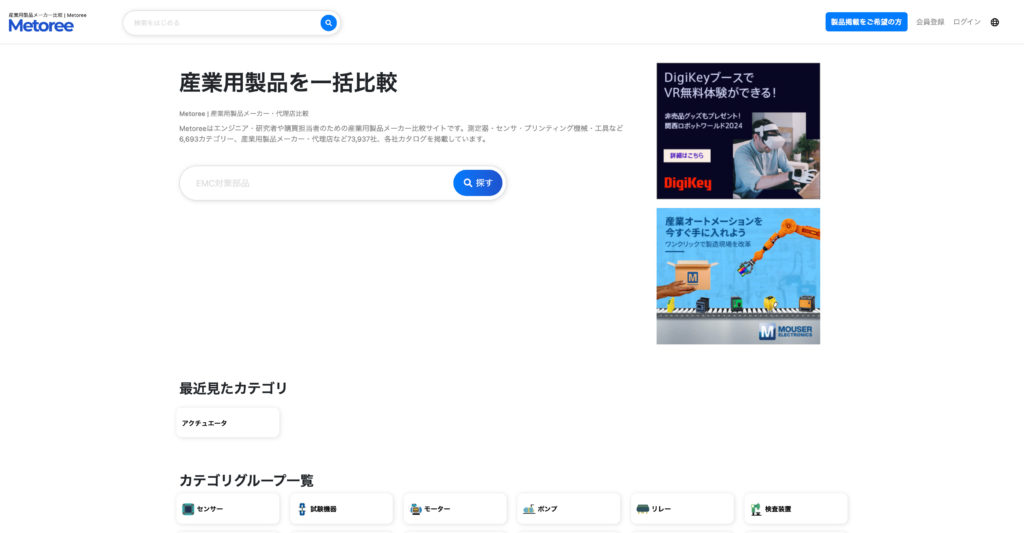 さらに、70,000社以上の様々な産業用製品メーカーが登録されており、自社製品の情報やバナー広告を掲載し、エンジニアや業界関係者にもPRすることができます。詳しい広告掲載料金については下記の公式サイトよりお問い合わせください。