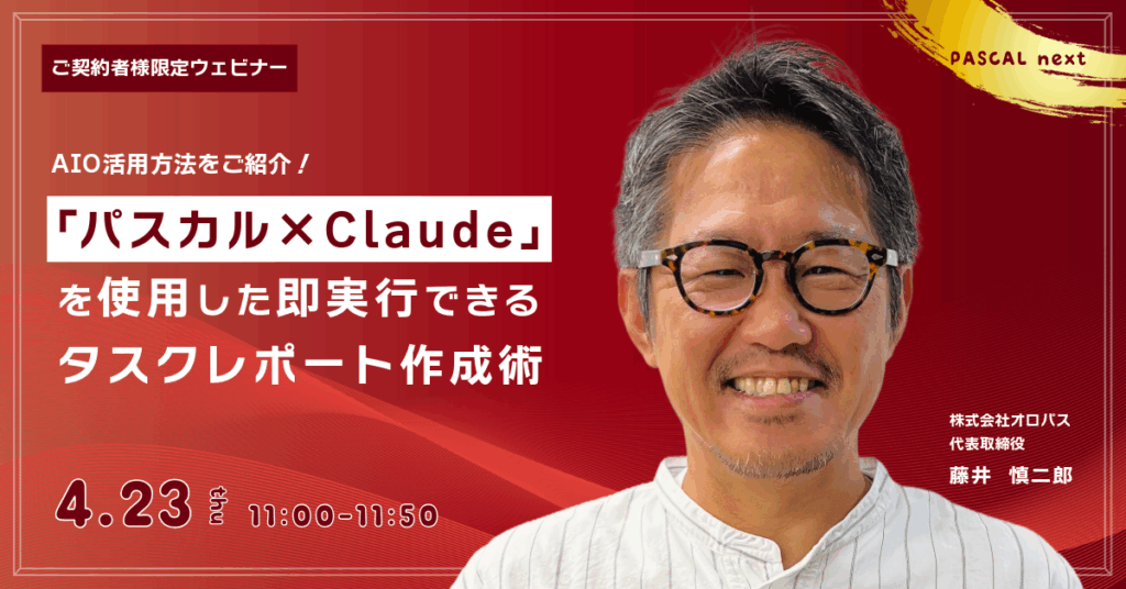 【ご契約者限定ウェビナー】AI活用方法をご紹介!「パスカル×Claude」を使用した即実行できるタスクレポート作成術