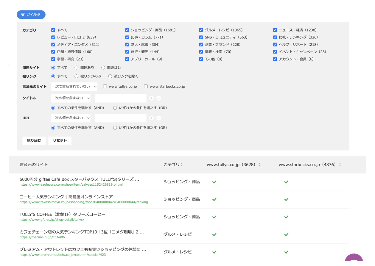 アプローチするべきは、競合が言及されているのに、自社が言及されていない言及元(記事等)です。
